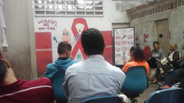 People wait in the waiting room at an HIV/STI clinic in Caracas, Venezuela, on Feb. 13. 2019. Venezuelan HIV/AIDS service providers tell the Washington Blade that people with HIV/AIDS are dying because of an acute shortage of available anti-retroviral drugs in the country. (Photo courtesy of Alianza Lambda de Venezuela)